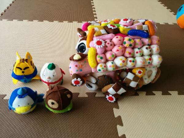 お菓子の家におきあがりこぶし♪他にもお寿司セットなど、フェルトを使ったおもちゃが満載☆彡